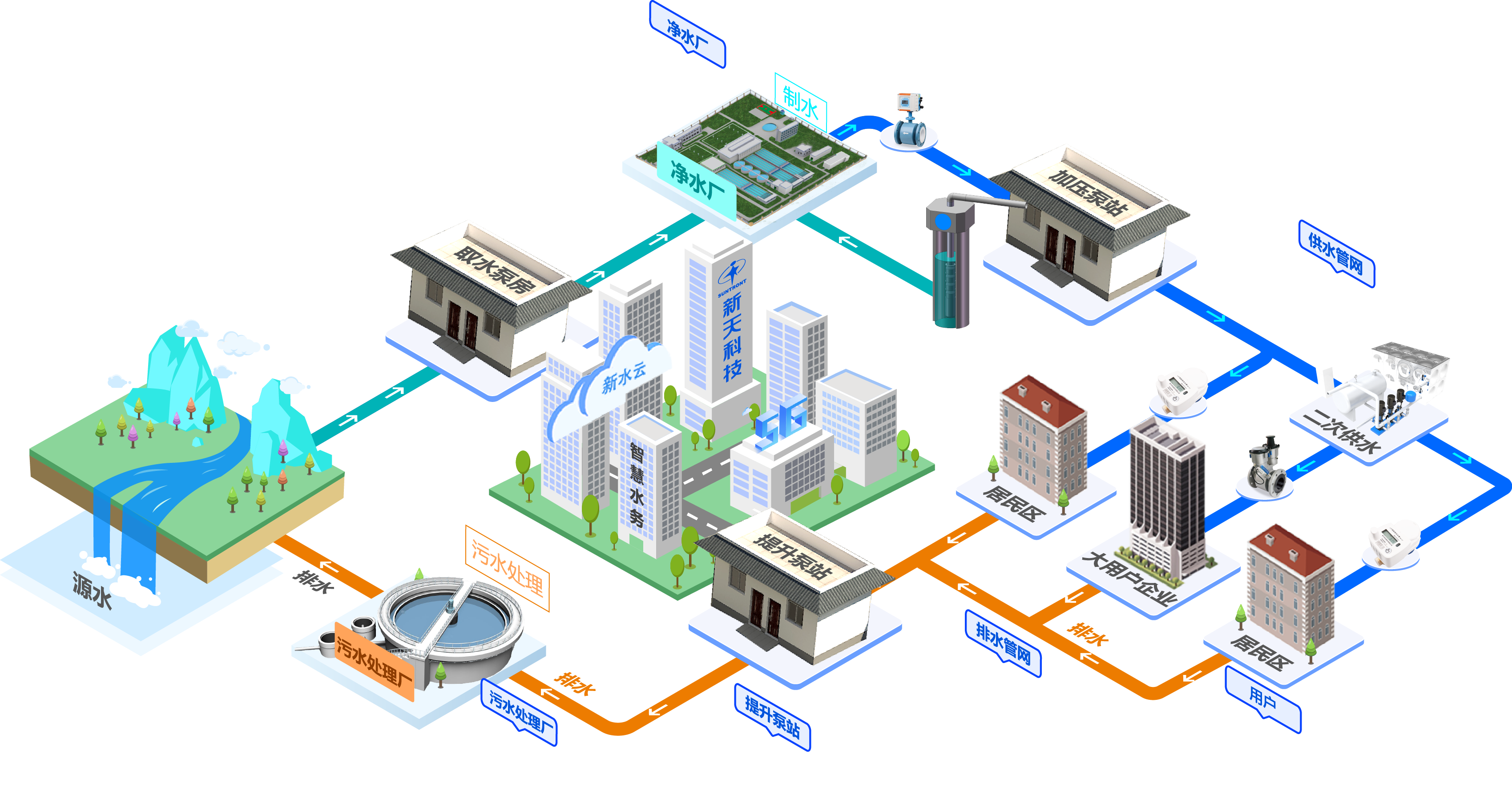 水务物联网是将水务系统内所有厂、站、网的监测终端、运行设备、监控设备、水表等终端连接起来,构建水务物联网平台,实现水务要素全天候自动实时监测、预警、分析和管理。
