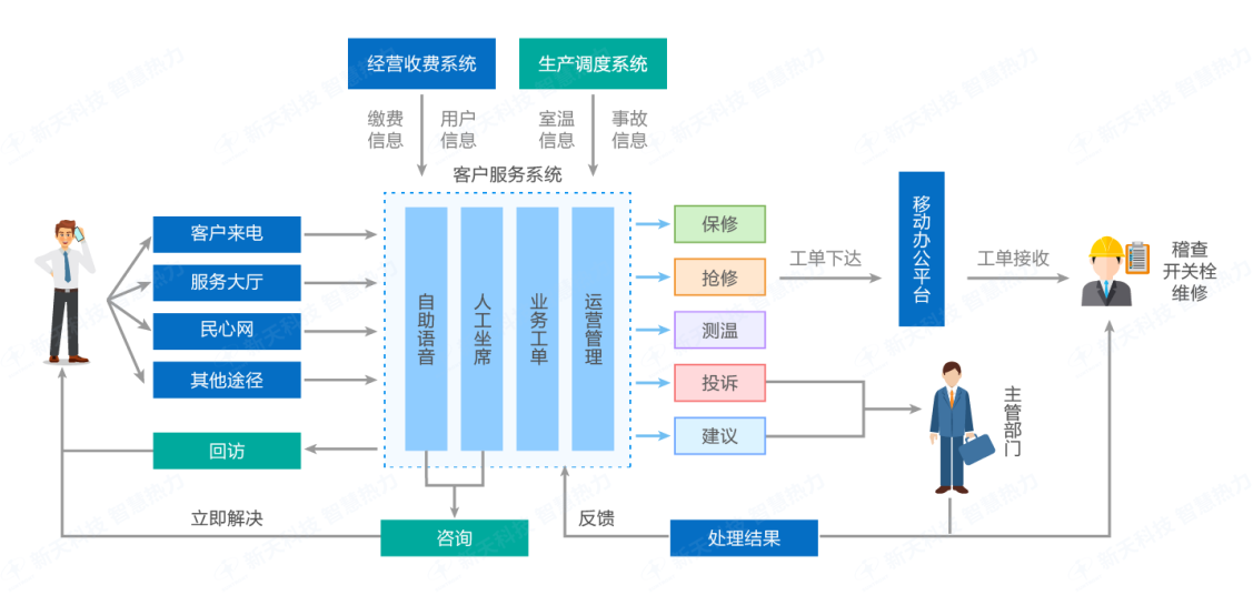 系统可给予微信公众平台、话务热线、AI智能接口等对外服务渠道